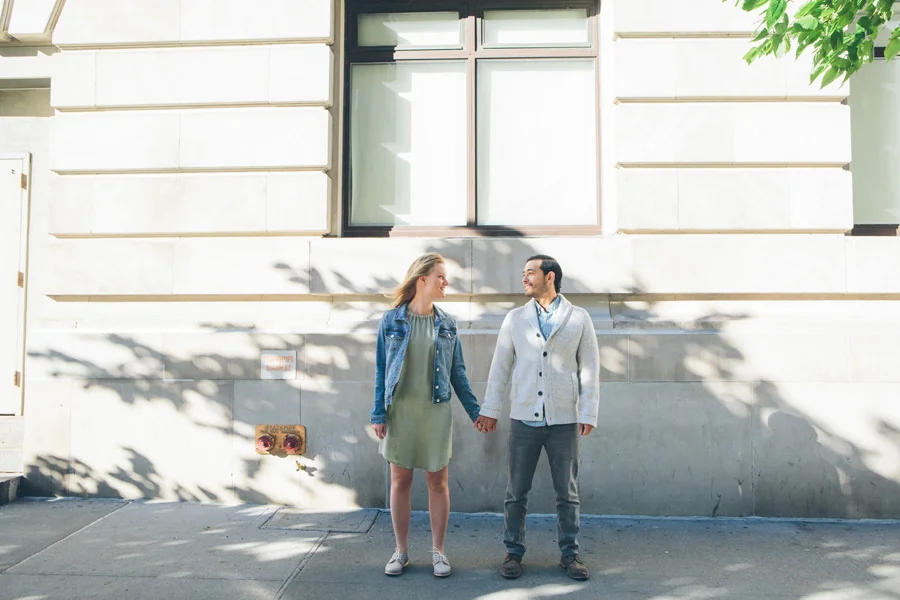 Claudia and Brendan are planning to have their wedding in Amsterdam, so it seemed only fitting to get a couple of shots over by Amsterdam Ave on the Upper West in New York City! We took a stroll over to their running path near Central Park West, hit the spot where Brendan proposed to Claudia.. and then walked a little bit more around their neighborhood. It was a really great, casual and fun shoot with them! I love being able to photograph engagement session in New York City!! Also, working with such fun and laid back people were amazing. They were such naturals!!