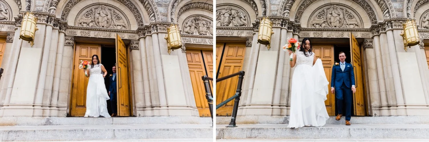 Michelle and Mark, guided by their deep love and a desire for a meaningful celebration, entrusted me, a passionate New York City wedding photographer, to capture their journey. Their decision to exchange vows in the heart of their neighborhood was a testament to their commitment to each other and to their community. Surrounded by the familiar embrace of a cherished church, Michelle and Mark embarked on a heartfelt journey of commitment and devotion. Against this backdrop, their vows echoed with sincerity and love, creating an atmosphere that was both intimate and profound.